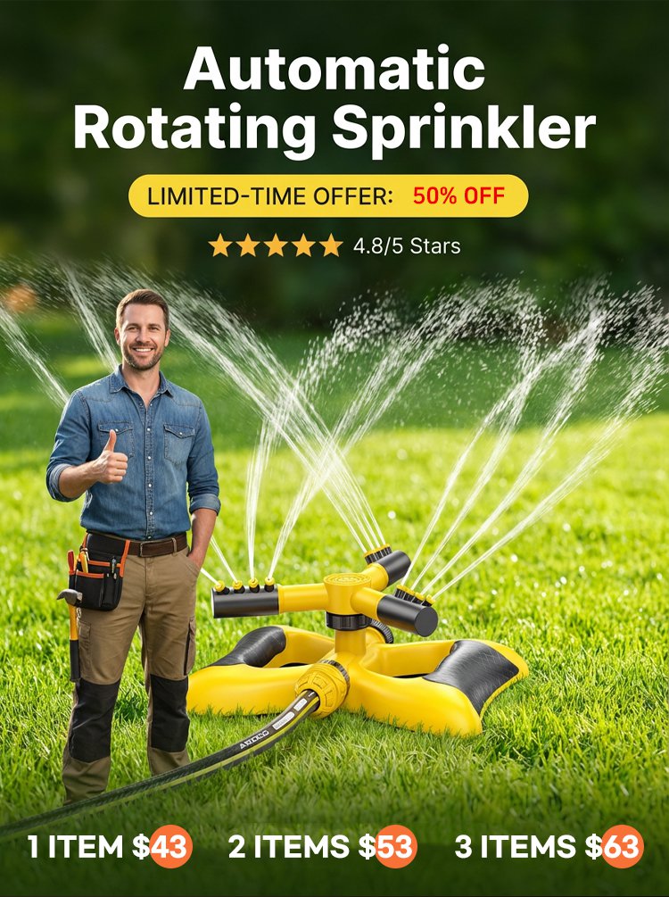 360° Automatic Rotating Sprinkler - Saves 40% of Water